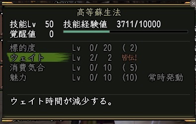 覚醒が中途半端な技能が多くて、全皆伝してる技能がまだない医術・・・(ノ∀`)タハー