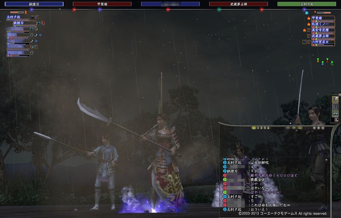 戦場にて。誰かが武将をやり始めると、その陣にわらわらあつまりNPCを狩るってのがいいね。