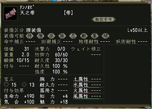 でも、攻城戦を進めていくと、またいい帯が手に入るようなので、それに期待します。