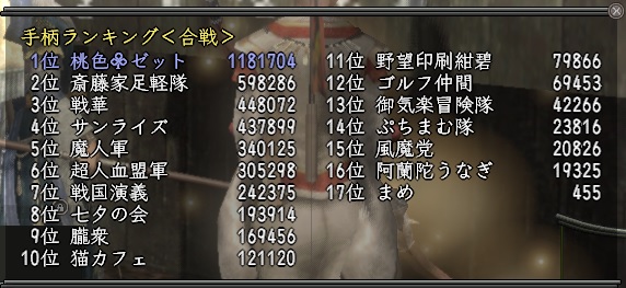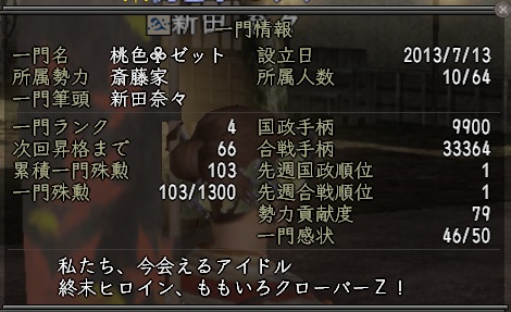 うちの一門が、国政手柄と合戦手柄の両方で1位獲ったどーーー!!